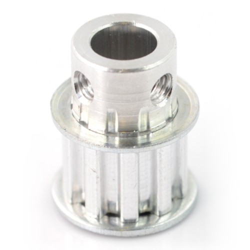 Aliuminio krumpliaratis su 10 dantų. Skersmuo: 19 mm, aukštis: 23 mm, skylės skersmuo: 8 mm.