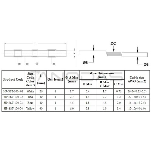 Skardinė termosusitraukianti jungtis (0,25-1,5 mm² L40) – tai 10 vienetų elektros jungčių rinkinys, leidžiantis greitai ir patogiai sujungti įvairaus skerspjūvio laidus. Kiekviena jungtis yra kūginė, o tai reiškia, kad ji susitraukia nuo temperatūros, apvyniodama laidus ir užtikrindama nuolatinį elektros jungtį. Be to, šios jungtys viduje yra padengtos skarda, kuri padidina atsparumą korozijai ir apsaugo jungtį nuo ryšio praradimo.