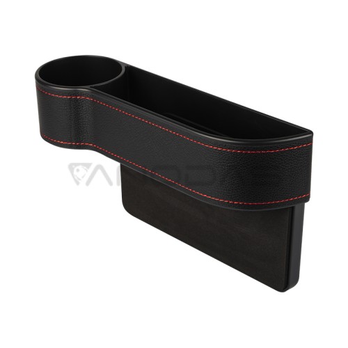 Automobilio laikymo dėžė su plyšiais su skyreliais ir puodelių laikikliu, skirta montuoti kairėje pusėje tarp priekinės keleivio sėdynės ir pavarų dėžės. Išskirtinai gražūs juodos spalvos apmušalai užtikrina, kad gaminys tiks bet kokio automobilio salone, o raudonas siūlas pabrėžia unikalų ir modernų dizainą. Priekinėje dalyje yra gėrimų (puodelio, stiklinės, skardinės ar butelio) laikiklis.
