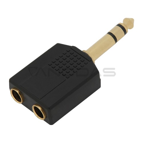 Lizdų skirstytuvas su vienu 6,3 lizdo kištuku ir dviem 6,3 stereo lizdo lizdais su auksu dengtais galais.