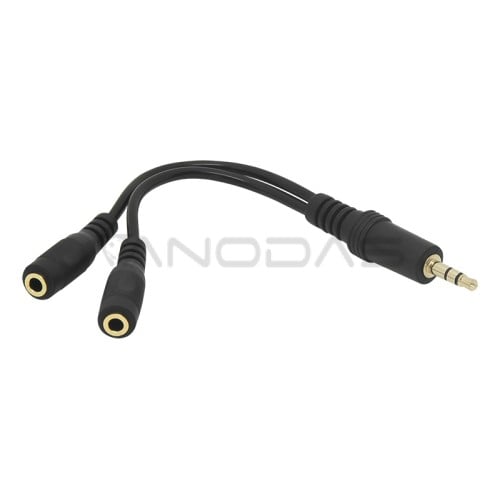 3,5 mm lizdo skirstytuvas. Jack 3,5 mm tiesus kištukas prie dviejų 3,5 mm lizdų