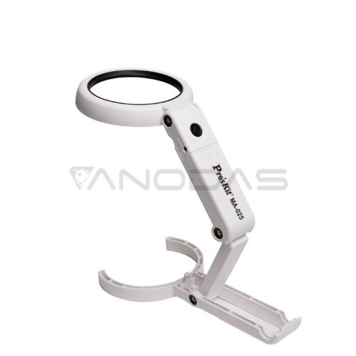 Du panaudojimo būdai (laikomas rankoje arba pastatomas) - galima patogiai laikyti rankoje kaip įprastą didinimo stiklą su rankena, arba išlankstyti stovą ir pastatyti ant stalo, naudoti kaip pastatomą didinimo stiklą
