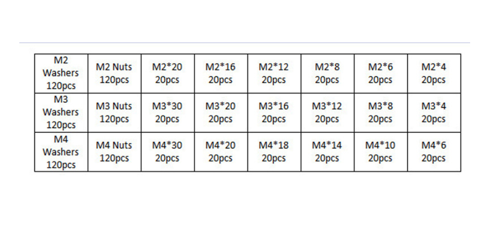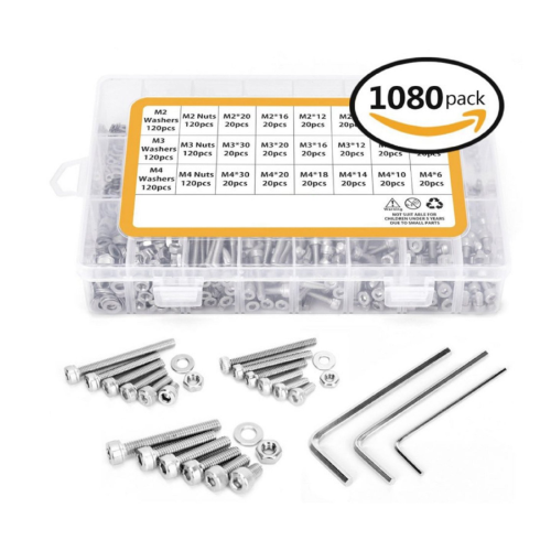M2 M3 M4 nerūdijančio plieno varžtų, veržlių ir poveržlių rinkinys. Rinkinys susideda iš 1080vnt dalių.