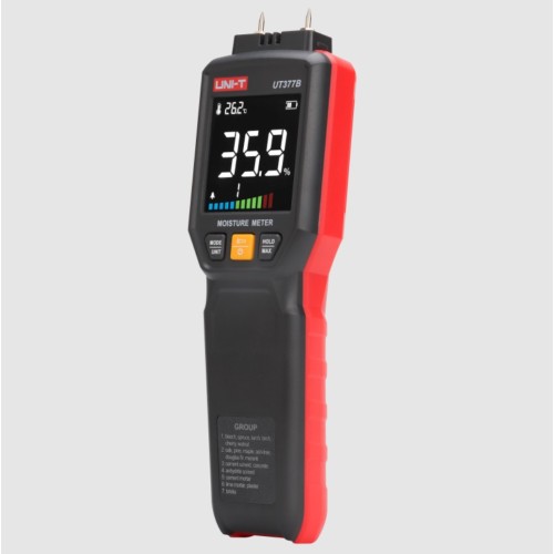 UT377B yra stabilus, saugus ir patikimas smeigtinis drėgmės matuoklis su LCD ekranu, kuris užtikrina aiškius ir intuityvius drėgmės kiekio rodmenis. Juo galima matuoti kelias skirtingas statybinių medžiagų ir medienos rūšių drėgmę. Įrenginys turi aplinkos temperatūros kompensavimo funkcija, kuri ženkliai sumažina matavimo paklaidas. Dėka greito matavimo, mažo energijos suvartojimo ir didelio tikslumo šis prietaisas yra nepaminomas greitam drėgmės matavimui medienos medžiagose, popieriaus gamyboje, faneros, medienos džiovinime, baldų apdailoje ir statybinėse medžiagose.