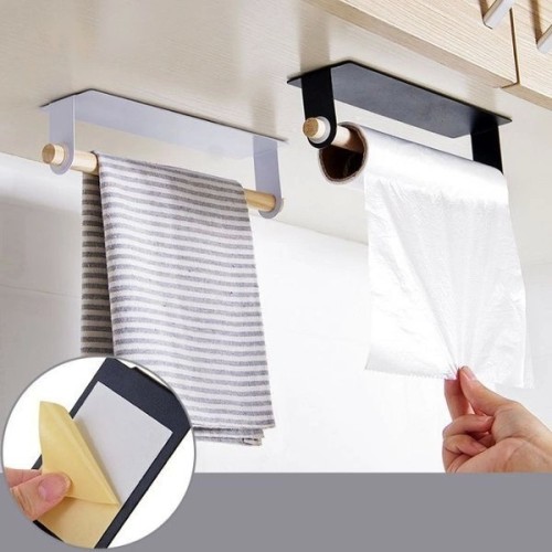 Medinis rankšluosčių, popierinių rankšluosčių, folijos ir tualetinio popieriaus laikiklis – puikus sprendimas pakabinti virtuvės ar vonios reikmenis. Pakabą galima klijuoti ant plytelių, baldų, veidrodžio, sienos ar bet kokio kito lygaus ir lygaus paviršiaus.