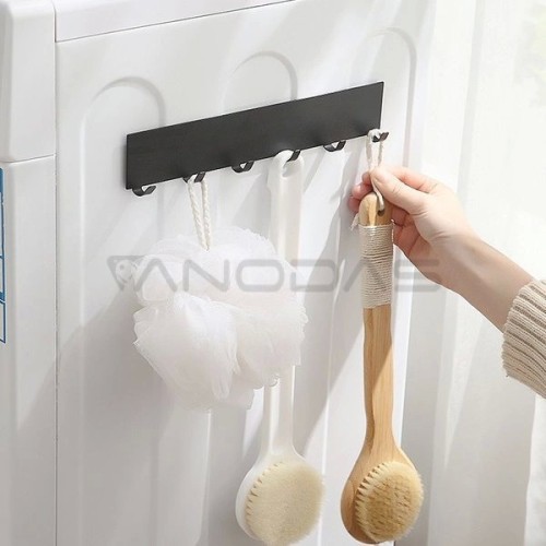 Sieninis laikiklis su kabliukais – puikus sprendimas pakabinti virtuvės ar vonios aksesuarus, rankšluostį, šepetį ir daugybę kitų dalykų. Pakabą galima klijuoti ant plytelių, baldų, veidrodžio, sienos ar bet kokio kito lygaus ir lygaus paviršiaus.