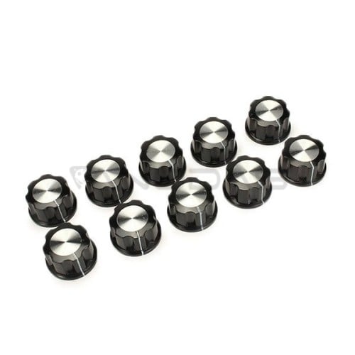 MF-A02 potenciometro rankenėlė pagaminta iš bakelito su 6,35 mm vario šerdimi. Tai elektroninis komponentas, naudojamas potenciometro varžos vertei reguliuoti.