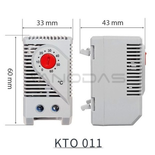 - Mini termostatas - 0°-60°C - NC - KTO011 - 230VAC - uždarymo reguliatorius - 1 vnt.