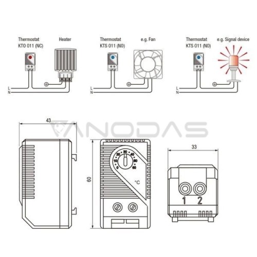 Mini termostatas – 0°-60°C – NC – KTO011 – 230VAC – atidarymo valdiklis