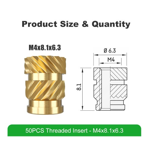 Mintion M4 x 8.1 mm x 6.3 mm srieginių įdėklų rinkinys - 50 vnt