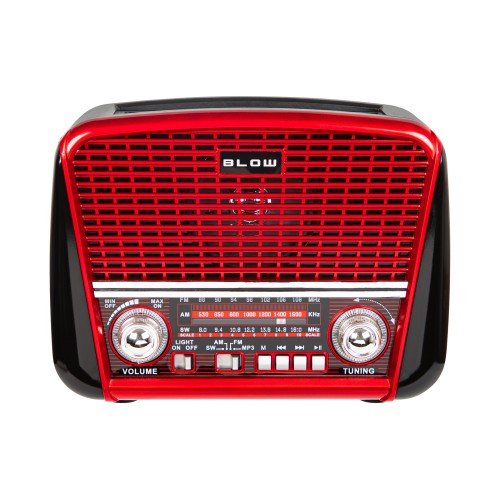 Nešiojamasis analoginis AM/FM radijas BT BLOW RA17 saulės energija varomas, raudonas