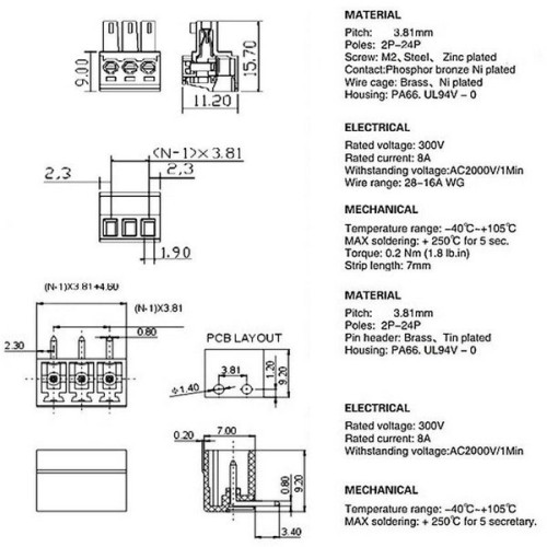 Pilnas komplektas (vyriškas ir moteriškas), viena dalis skirta laidams sujungti, o kita montuoti ant spausdintinės plokštės.