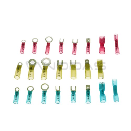 1. Trijų dydžių termosusitraukiančios izoliuotos, užspaudžiamos greitosios jungtys:
