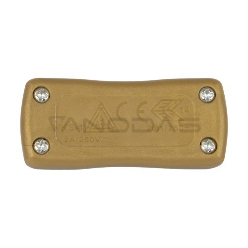 Geltonos spalvos PP15 praėjimo jungiklis, skirtas montuoti į 230V įrenginius, tokius kaip naktinė lempa ir kt.