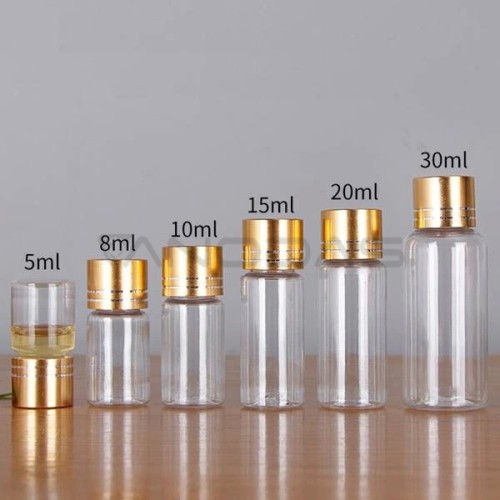 Plastikinis buteliukas su metaliniu dangteliu 10ml - Mėginio buteliukas