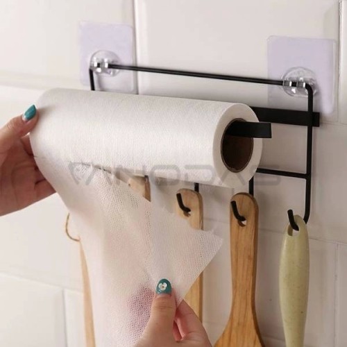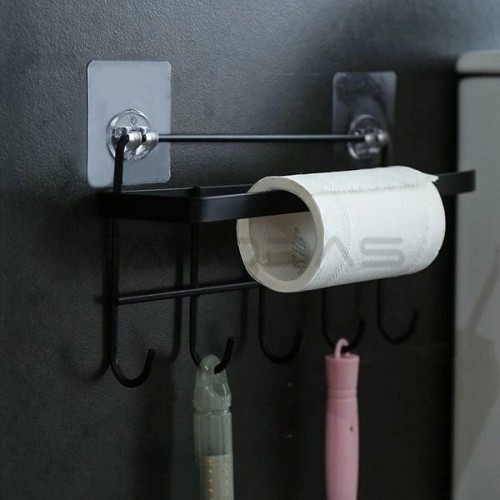 Popieriaus laikiklis su 5 pakabomis - juodas - Rankšluosčių laikiklio folijos