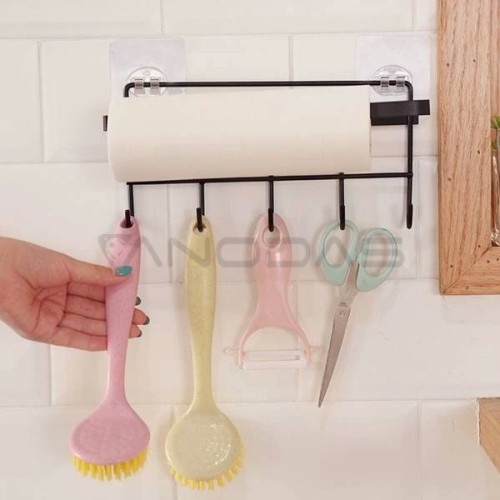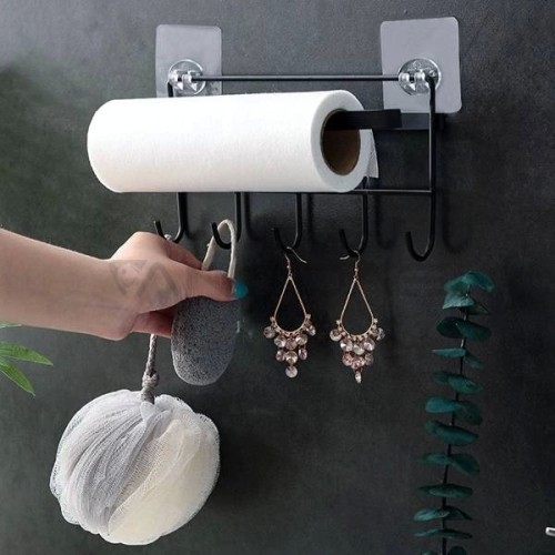 Virtuvinis rankšluosčių, popierinių rankšluosčių ir folijos laikiklis su 5 kabliukais – puikus sprendimas pakabinti virtuvės ir vonios reikmenis. Pakabą galima klijuoti ant plytelių, baldų, veidrodžio, sienos ar bet kokio kito galimo lygaus ir lygaus paviršiaus.