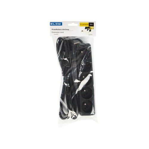 BLOW juodas maitinimo laidas su trimis lizdais, skirtas naudojimui namuose. Prailginimo laidas leidžia prijungti įrenginius, kurie yra toli nuo elektros lizdo. Vienoje gaminio pusėje yra 3 kampiniai lizdai ir jungiklis, o kitoje - vienas kampinis maitinimo kištukas.