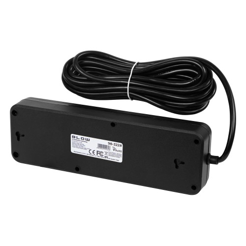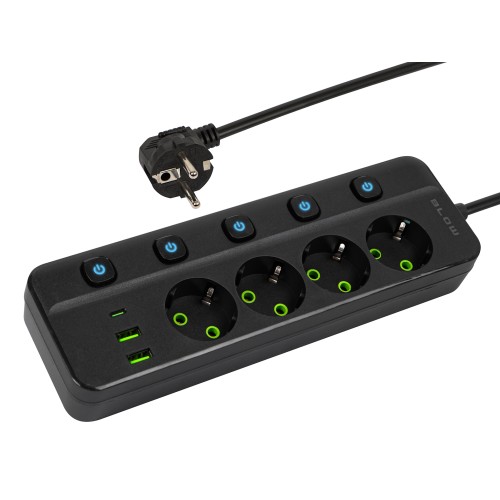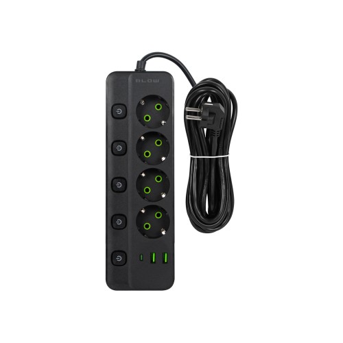 PS-450M maitinimo prailginimo kabelis su 4 lizdais, 2xUSB+USB-C, 5m, juodas, 3x1mm