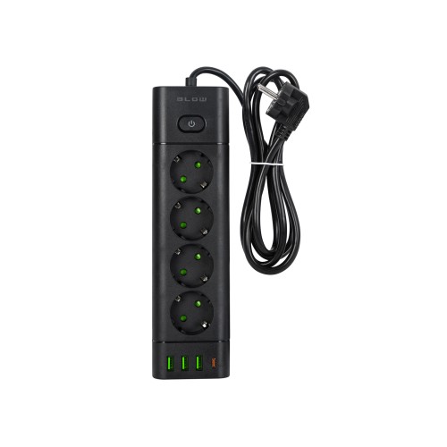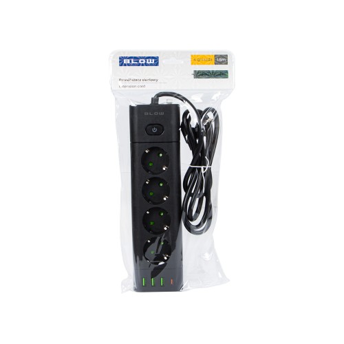 PS-450T 4 lizdų maitinimo prailginimo kabelis 3xUSB+USB-PD 1.5m juodas 3x1mm