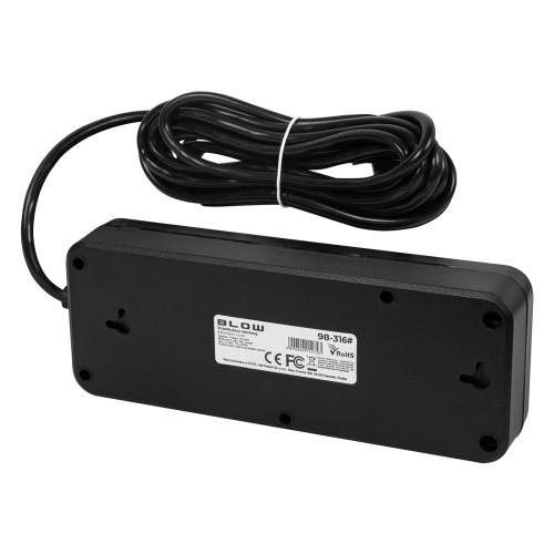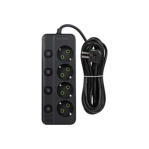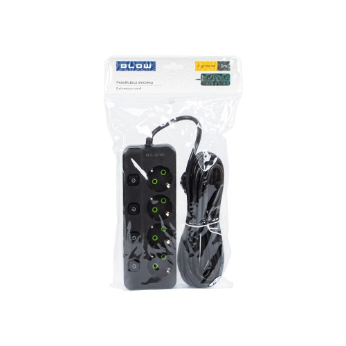 PS-480S 4 lizdų maitinimo prailgintuvas, 5 m, juodas, 3 x 1 mm