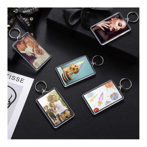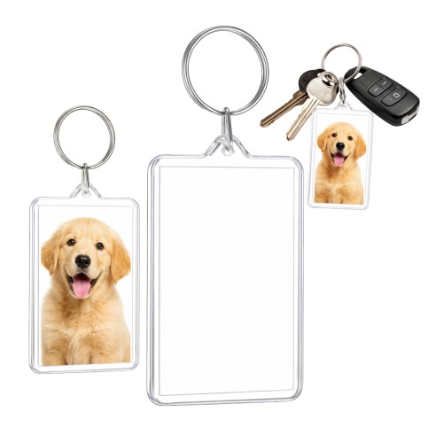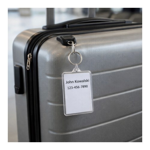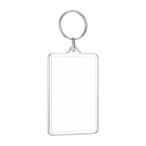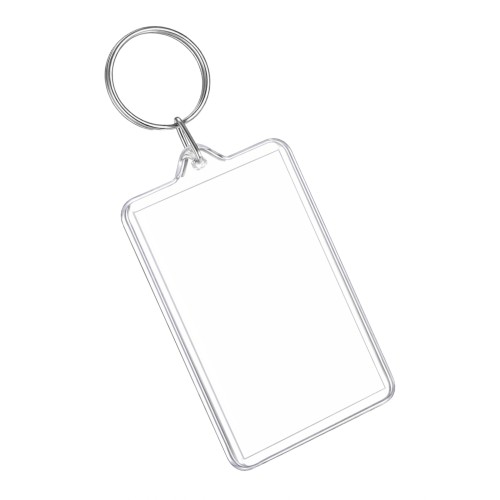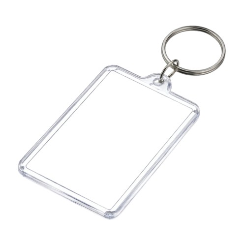 Labai praktiška raktų pakabukas, pagamintas iš skaidraus plastiko, su patogia keičiama kortele viduje, matoma iš abiejų pusių.
