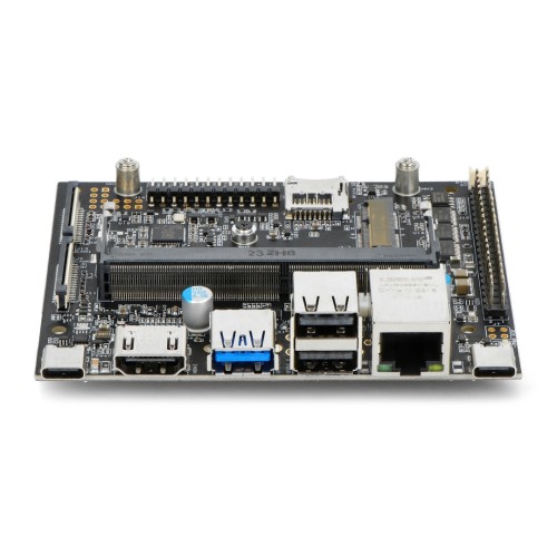 - Turtinga periferinė atmintis. Joje yra USB 3.0, USB 2.0, M.2 E raktas WiFi / Bluetooth, RTC, 40 kontaktų Raspberry Pi ir dar daugiau