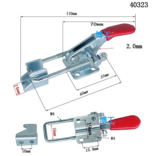 Universalus reguliuojamas spaustukas, kurio jėga 165 kg. Labai praktiškas įrankis, skirtas atidaromiems daiktams, pavyzdžiui, įrankių dėklams, durims ir pan., tvirtinti. Horizontalųjį spaustuvą galima naudoti modeliavimo, elektronikos dirbtuvėse ir pan.