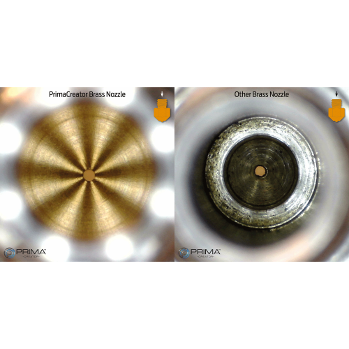 Visi PrimaCreator antgaliai yra pagaminti iš aukščiausios kokybės žalvario, vario arba plieno (priklausomai nuo tipo). Visi antgaliai gaminami su mažesniu nei ± 0,01 mm nuokrypiu. Tai reiškia, kad ekstruzijos metu jūsų plastiko paviršius bus labai lygus ir skaidrus, o tai, žinoma, pagerins spaudinius.