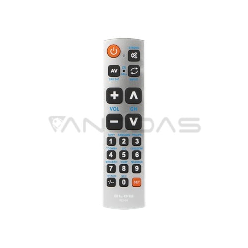Svarbiausios savybės: Universalus nuotolinio valdymo pultas skirtas senjorams ir vaikams Labai dideli mygtukai Paprastas ir intuityvus valdymas Lengvas sinchronizavimas su įrenginiais, su kuriais turi veikti nuotolinio valdymo pultas Suderinamas su daugeliu žinomų televizorių prekių ženklų, įskaitant: Grundig, JVC, LG, Philips , Samsung, Sony, Sharp, Toshiba ir daugelis kitų !4 galimi prijungimo būdai Puikus nuotolinio valdymo pultas žmonėms su regėjimo negalia ir tiems, kuriems reikalingas paprastas ir greitas televizoriaus valdymas SAMSUNGSANYOSANSUISHARPSHIVAKISKYWORTHSOKOLSONYSTRONGSVATCLTHOMSONTOSHIBAVESTELVITYASXIHU ir kt.