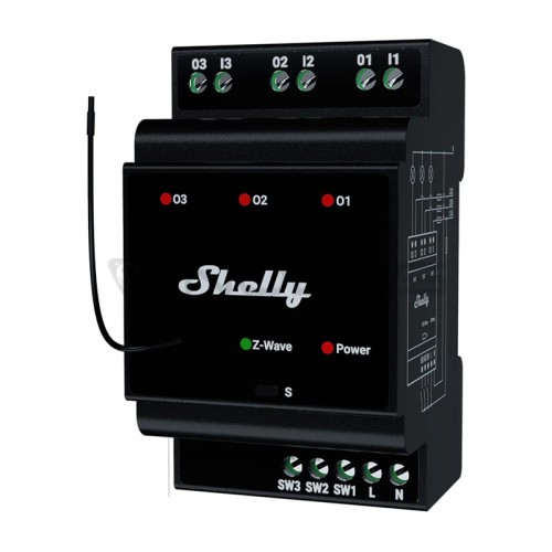 „Shelly Wave Pro 3“ yra 3 kanalų ant DIN bėgelio montuojama relė, palaikanti iki 48 amperų srovę ir skirta profesionaliam ir komerciniam naudojimui. Dėl „Z-Wave“ ir „Z-Wave Long Range“ technologijų ji siūlo iki 1 km atstumą, todėl užtikrina patikimą veikimą net dideliuose pastatuose. Ji palaiko 3 nepriklausomų grandinių valdymą per bepotencialius kontaktus, todėl yra suderinama su įvairia įtampa ir įrenginiais. Ji taip pat leidžia nuotoliniu būdu valdyti grafikus, scenas ir automatizuoti veikimą per suderinamą „Z-Wave“ šliuzą. Įrenginys yra energiją taupantis ir puikiai tinka gyvenamųjų namų, viešbučių, biurų ir pramonės įrenginių įrengimui.