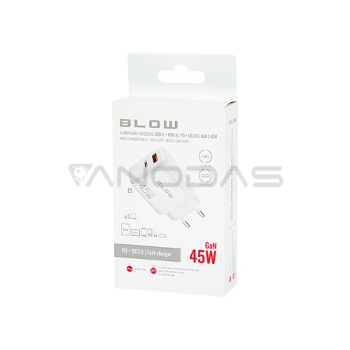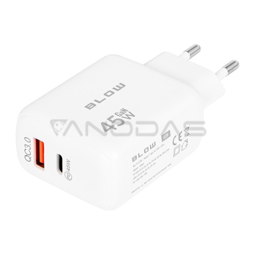 Sieninis įkroviklis USB lizdas + USB-C PD 45W GAN
