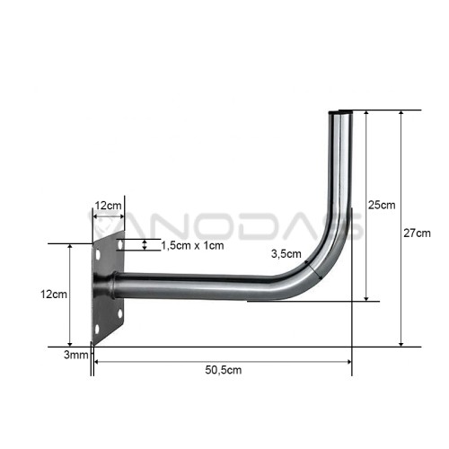 Kampinis antenos stiebas su tvirtinimu priekyje. Geriausias plienas garantuoja, kad rankena ilgus metus bus atspari lauke vyraujančioms oro sąlygoms, o vamzdžio gale uždėtas dangtelis neleidžia į ją patekti vandeniui. Stiebas idealiai tinka montuoti visų tipų antenas: antžemines, palydovines, radijo ir interneto. Stiebas, skirtas montuoti ant fasado, sienos ir kito lygaus paviršiaus.