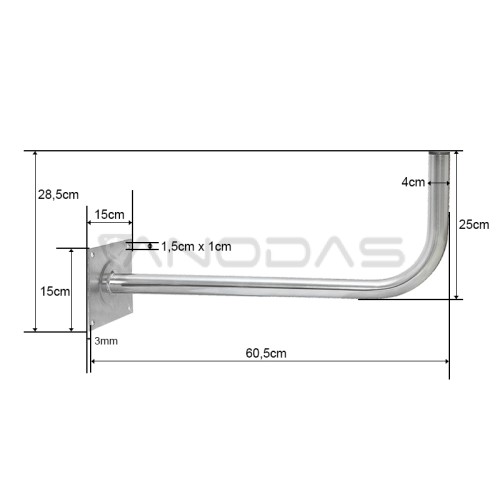 Kampinis antenos stiebas su tvirtinimu priekyje. Geriausias plienas garantuoja, kad rankena ilgus metus bus atspari lauke vyraujančioms oro sąlygoms, o vamzdžio gale uždėtas dangtelis neleidžia į ją patekti vandeniui. Stiebas idealiai tinka montuoti visų tipų antenas: antžemines, palydovines, radijo ir interneto. Stiebas, skirtas montuoti ant fasado, sienos ir kito lygaus paviršiaus.