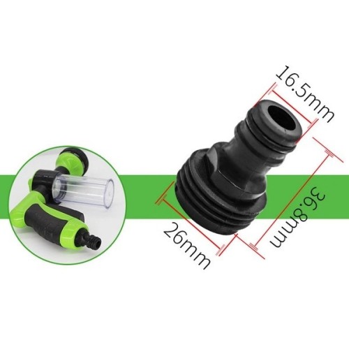 3/4" išorinio sriegio čiaupo kaištis yra dažniausiai naudojamas hidraulinių įrenginių elementas, leidžiantis prie standartinio čiaupo prijungti žarną ar kitą elementą su antgaliu.