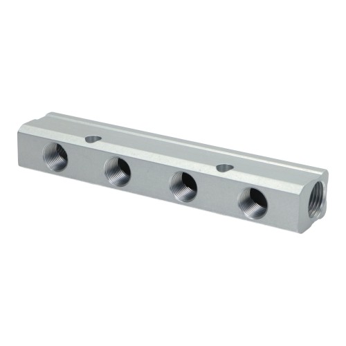 Srieginė aliuminio paskirstymo juosta, kolektorius 2 x G 1/2 GW - 4 x G 3/8 GW