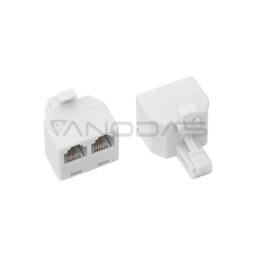 Telefono skirstytuvas su vienu kištuku ir dviem 6P4C (RJ14) lizdais.