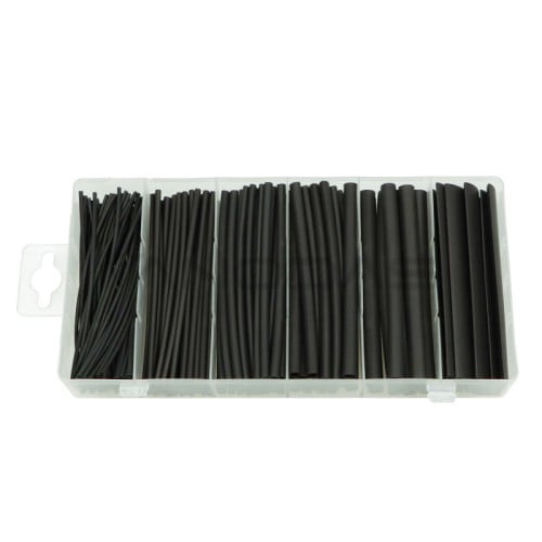 Termiškai susitraukiančių vamzdelių rinkinys 170 vienetų 1-9 mm juodos spalvos, įdėtas į patogią dėžutę su skyreliais