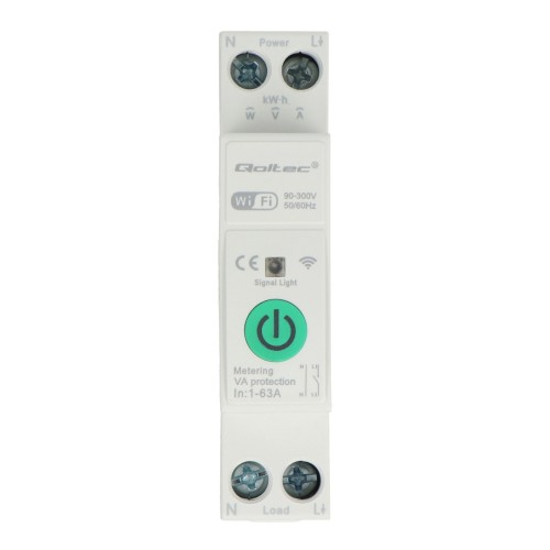 Tuya – išmanioji vienfazė relė su energijos skaitikliu – 63A – WiFi – Qoltec 50881
