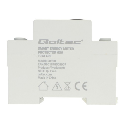 Tuya – vienfazė relė su energijos skaitikliu – 63A – WiFi – Qoltec 50990