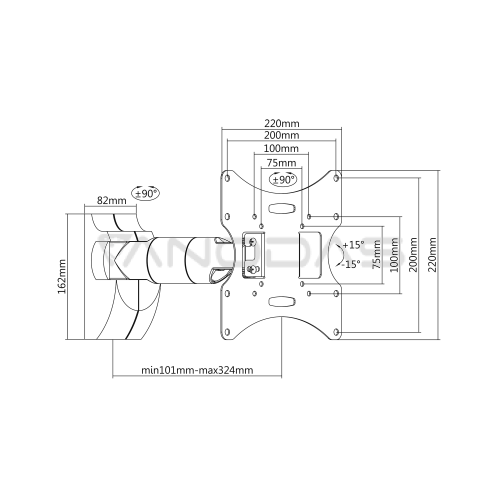 VESA standartas: 75x75, 100x100, 200x100, 200x200