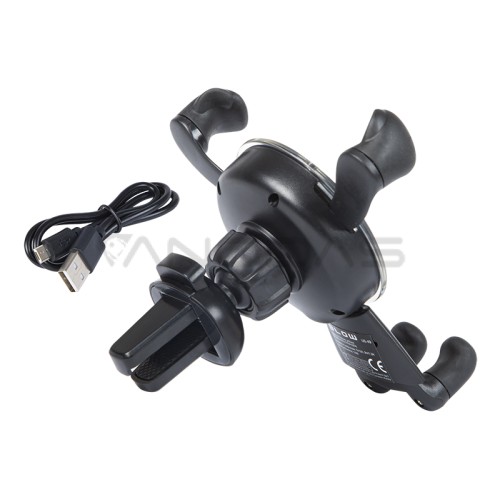 Gravitacinis automobilinis laikiklis su indukciniu įkrovikliu montuojamas ant automobilio ventiliacijos grotelių. Priemone itin paprasta naudotis, tereikia ant jo uždėti telefoną ir nasrai užsidarys automatiškai. Jis turi trikampę struktūrą, užtikrinančią stabilumą vairuojant, puikias reguliavimo galimybes ir gumines pagalvėles, taip pat specialią išpjovą, leidžiančią prijungti įkroviklį.