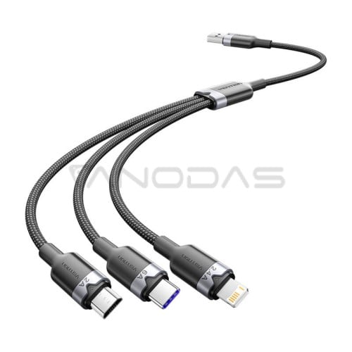 USB 2.0 A į 3-in-1 6A laidas Vention CTRBG 1.5M (juodas)