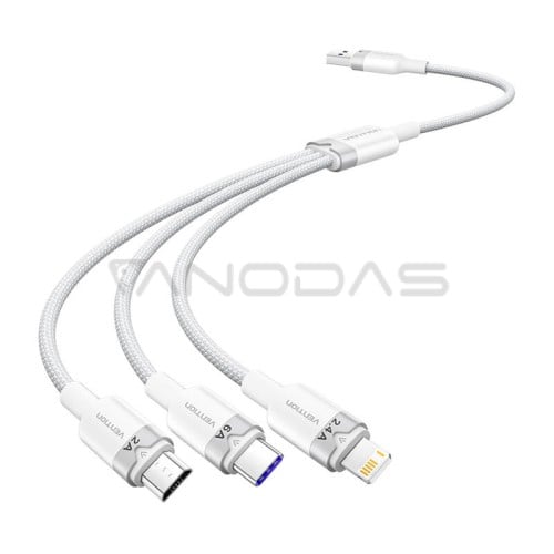 USB 2.0 A į 3-in-1 6A laidas Vention CTRWG 1.5M (baltas)