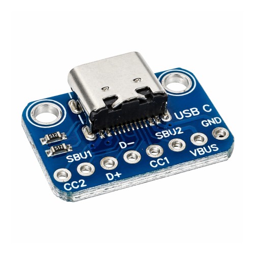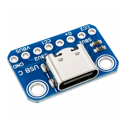 Modulyje yra USB prievadas. Po litavimo jį galima prijungti prie maketo arba laidų su auksiniais kontaktais. (Litavimo kontaktai nepridedami.)