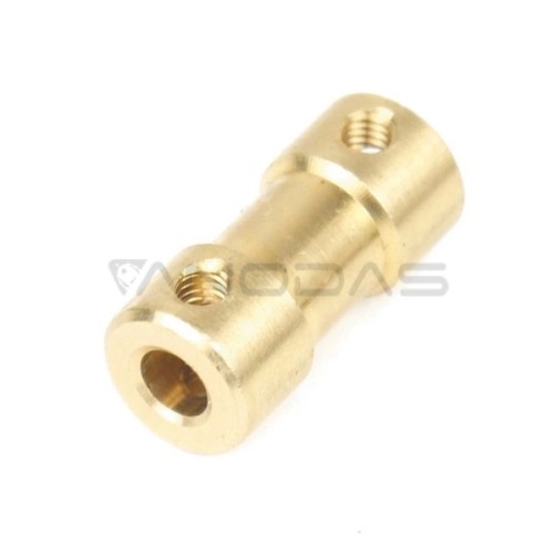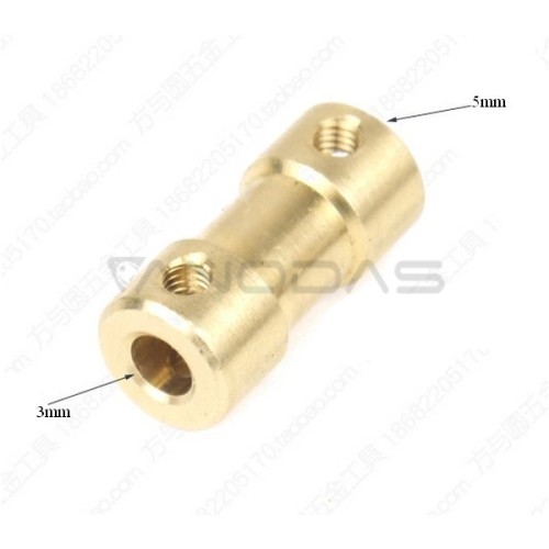 Žalvarinis variklio veleno adapteris 3mmx5mm. Komplekte yra 4 šešiabriauniai varžtai ašims sujungti. Adapteris, skirtas variklio ašiai arba jungiamoms ašims įvairių tipų „pasidaryk pats“ projektuose.Techniniai duomenys
