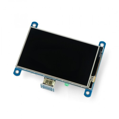 Waveshare Jutiklinis Varžinis Ekranas Raspberry Pi Mikrokompiuteriui su 800 x 480 pikselių ekrano raiška. Jungiamas su Raspberry Pi 4B / 3B + / 3B / Zero / Zero W mini kompiuteriu per HDMI jungtį ir GPIO.