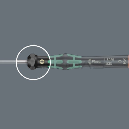 Aukštos kokybės Kraftform Micro atsuktuvas tiksliajai mechanikai. Galimybė remti ranką ant besisukančio dangtelio ir sukimosi zona, esanti tiesiai po dangteliu, leidžia greitai pasukti atsuktuvą pirštais. Tai visiškai pašalina daug laiko reikalaujantį sukimąsi. Jėgos perdavimo zona su minkštais guminiais įdėklais leidžia perduoti didelius sukimo momentus. Tikslumo zona užtikrina įrankio sukimosi kampo kontrolę atliekant precizinį darbą. Black Point antgalis garantuoja tikslų prigludimą prie varžto lizdo ir padidina atsparumą korozijai. „Take it easy“ įrankių paieškos sistema su dydžių spalviniu kodavimu leidžia greičiau ir lengviau rasti tinkamą įrankį.