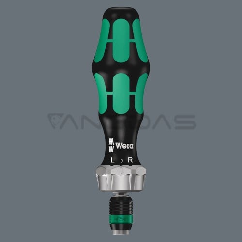 Reketinis atsuktuvas, reketinis mechanizmas smulkiais dantukais ir mažu darbiniu kampu, jungiklis darbo krypčiai keisti (dešinė, užrakinta, kairė), sukimo momentų perdavimas iki 50 Nm; 1/4" šešiakampis laikiklis su Rapidaptor sistema greitam antgalių ir antgalių keitimui, su magnetu, 1/4" šešiakampiams antgaliams pagal DIN ISO 1173-C 6.3 ir E 6.3, taip pat antgalių ir antgalių iš Wera serijos 1 ir 4