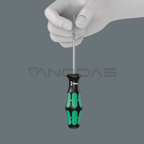 Aukštos kokybės Kraftform atsuktuvas. Su kelių komponentų Kraftform rankena greitam ir saugiam darbui. Kraftform rankena: kietos sukibimo zonos leidžia greitai suktis, minkštos zonos užtikrina didelių sukimo momentų perdavimą. Su laikymo funkcija: laikymo jėga, atsirandanti dėl atsuktuvo galo prispaudimo prie varžto arba varžto lizdo, leidžia jį tvirtai laikyti ant įrankio. 6 pusių flanšas neleidžia įrankiui nuriedėti. Žymėjimas, kad būtų lengviau rasti tinkamą atsuktuvą.